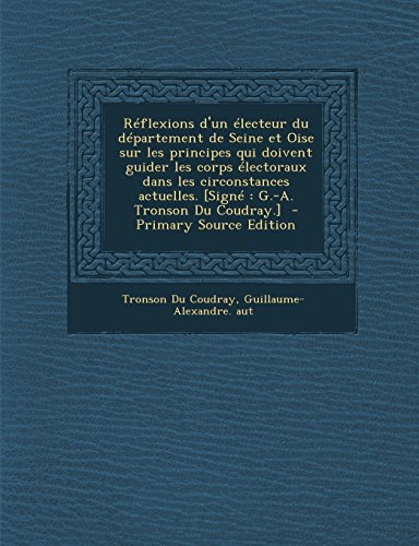 And the Reflexions D'Un Electeur Du Departement de Seine Et Oise Sur Les Principes Qui Doivent Guider Les Corps Electoraux Dans Les Circonstances Actuelles. [Signe: G.-A. Tronson Du Coudray.] PDF Kindle book will be yours.